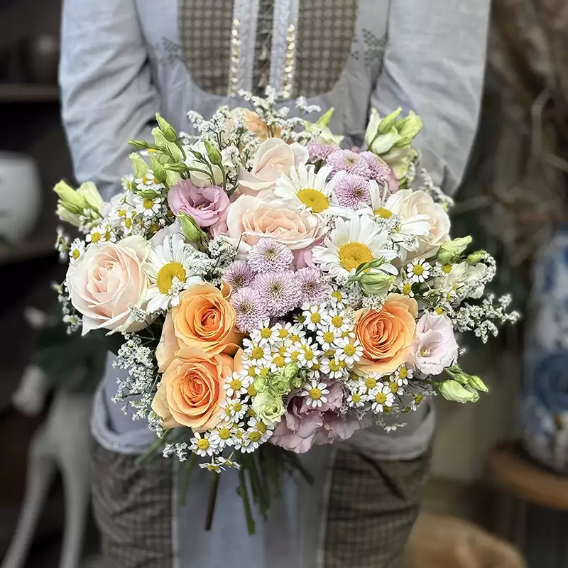- Možnost náhrady: vždy se snažíme dodržet složení kytice, ale ne vždy je dostupný květinový materiál. Proto jednotlivé květiny mohou být nahrazeny. Například: tanacetum santinami, kopretiny germínami nebo chryzantémami, eustomu hledíkem, alstromériemi nebo trsovými růžemi, limonium waxem nebo gypsophilou a santini chryzantémami. Případně můžeme použít jako náhradu i jinou květinu v odlišné barvě. Ale vždy se snažíme zachovat charakter kytice.